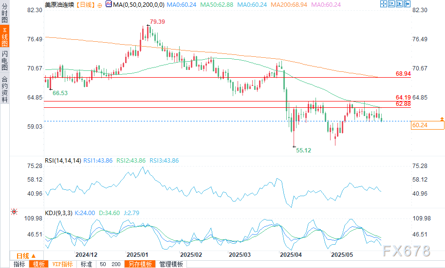 周五(5月30日)欧市盘中,原油期货下跌约1%,上行势头受到50日均线62.88美元的压制。在缺乏明确催化剂的情况下,买方似乎不愿在这些价位上方建仓。市场目前的盘整阶段已持续六个交易日,表明交易员在等待定于本周末举行的欧佩克+会议结果时持谨慎态度。