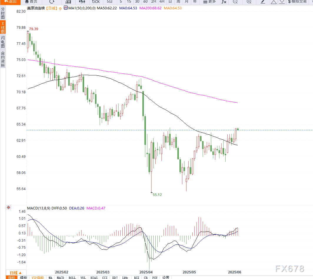 若价格能有效突破前高65.20美元,短期有望挑战66.80美元一线阻力;反之,若跌破63.50美元,将可能回调测试62.00美元支撑区域。