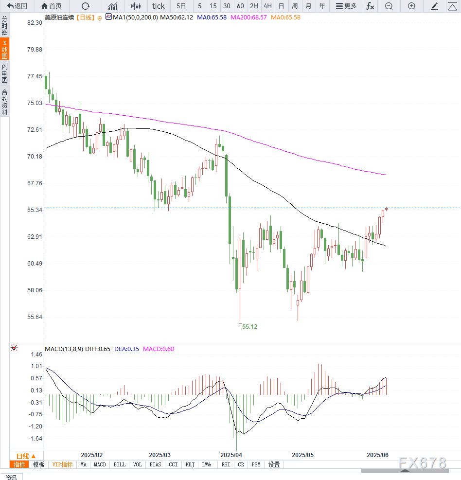 亚洲大国和美国谈判在伦敦进入第二天,焦点涵盖从关税到关键材料供应限制。当前的磋商被视为缓解全球供应链紧张和经济增长放缓风险的关键窗口。据市场调查显示,美国总统表示谈判“进展良好”,并称“从团队那边收到的都是正面消息”。   市场普遍预期,若达成协议,将有助于遏制贸易担忧情绪,推动原油需求增长。   中东局势方面,伊朗宣布即将提交对核协议的反提案,以回应美方先前提出但被其视为“不可接受”的条件。双方目前在是否允许伊朗继续在本土进行铀浓缩问题上仍存在明显分歧。   作为OPEC第三大产油国,若美国放宽对伊朗的制裁,其原油出口可能恢复,进而增加全球供应量,抑制油价反弹空间。   OPEC供应数据也受到市场关注。据市场调查显示,OPEC在5月的整体产量出现增长,但幅度有限。其中,伊拉克因弥补此前的超产而限制了当前产出,沙特和阿联酋则仅小幅增产,未完全动用配额。   OPEC+联盟(包括俄罗斯等非OPEC产油国)正加速退出先前的减产协议。这一策略转向可能导致市场供需失衡。   ANZ高级大宗商品策略师Daniel Hynes表示:“如果OPEC最终转向完全由市场驱动的供给策略,原油市场将在2025年下半年出现大幅过剩,油价几乎必然走低。”   从技术面来看,美国原油(WTI)日线图显示,价格在突破自4月中旬以来的震荡区间上沿后,持续运行于65美元上方,短期呈现出温和的上升通道。   当前价格位于20日与50日均线上方,显示多头情绪占据主导。MACD指标维持在零轴上方,红柱初现,暗示动能增强。若能持续站稳65美元,下一阻力位将指向4月初高点66.80美元区域。反之,若价格跌破64.20美元,将重返盘整格局,面临20日均线支撑考验。