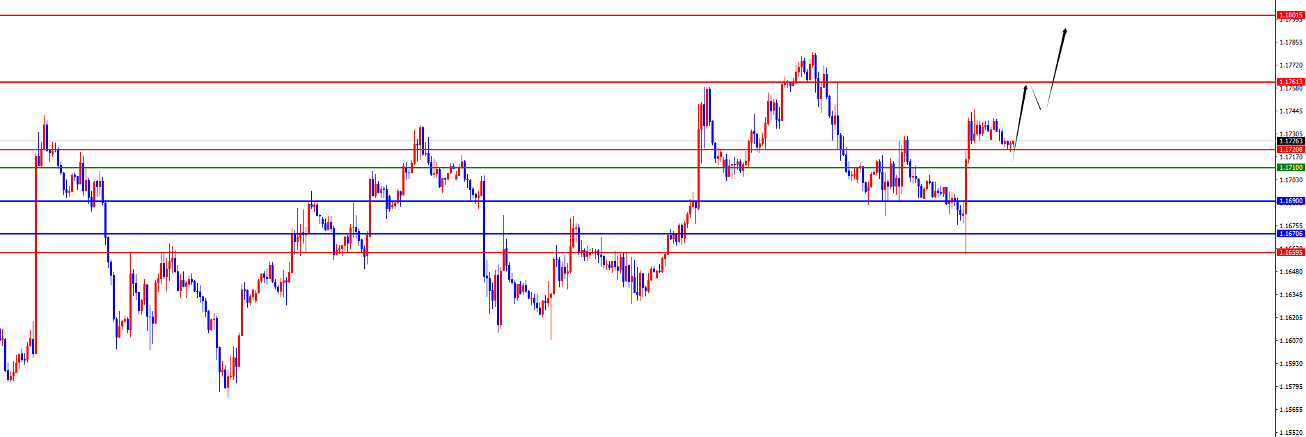 美指97.70为短期分水岭 欧美 欧美方面,周四欧美价格总体呈现探底回升的状态。当日价格最低下跌至1.1659位置,最高上涨至1.1745位置,收盘于1.1732位置。回顾周四欧美市场表现,在早盘期间价格先承压下跌,之后弱势运行,美盘附近价格测试到日线及周线支撑后快速上涨,并且上破昨日早盘高点,整体大阳收尾,后续短期偏多对待。 从多周期分析,从月线级别来看,欧美受撑于1.1060位置,所以价格在此位置之上长线多头对待。从周线级别看价格受撑于1.1670区域的支撑,此位置是中线走势的多空分水岭,在没有下破之前先看中期多。从日线级别,随着时间的推移目前日线阻力于1.1690位置,此位置作为波段走势的关键分水岭,价格在此区域之上先看波段多。同时按照四小时级别看,随着时间的推移目前四小时支撑于1.1710-20区间支撑,价格在此区域先看上涨延续,上方关注1.1760-1.1800区域。