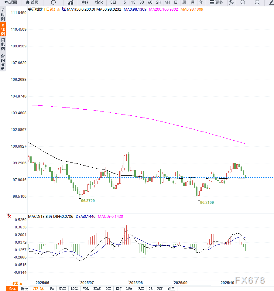 XM外汇官网:美政府停摆与降息预期叠加打压美元,美元指数连续第四日下跌至98.2
